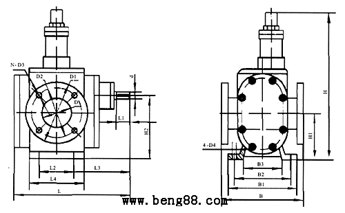 YCB型齒輪泵外形及安裝尺寸的性能參數(shù),是在介質(zhì)粘度4×10-3m2/s(40cSt)時(shí)確定的。YCB型齒輪泵外形及安裝尺寸性能參數(shù)表中給出的參數(shù)值適用于介質(zhì)粘度1×10-5~8×10-5m2/s(10~80cSt)范圍內(nèi),超出這個(gè)范圍則根據(jù)用戶提出的性能參數(shù)要求另行確定。