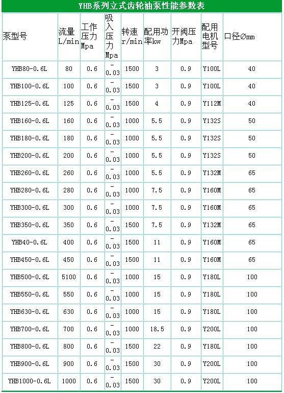YHB800,YHB500,YHB400具有運(yùn)轉(zhuǎn)平穩(wěn),噪聲低,適合長(zhǎng)期連續(xù)工作的特點(diǎn). 適用范圍和主要用途 YHB型立臥式齒輪油泵主要用于石油,化工,冶金,礦山,電站,環(huán)保等行業(yè)的壓縮機(jī),冷凍機(jī),船舶等大型機(jī)械設(shè)備的強(qiáng)制潤(rùn)滑和和種機(jī)械設(shè)備中稀油站供油系統(tǒng)長(zhǎng)期工作的場(chǎng)合.輸送介質(zhì)溫度30°C-120°C,粘度不大于50m/S的不含固體顆粒雜質(zhì)的機(jī)械油,汽輪機(jī)油等有潤(rùn)滑性